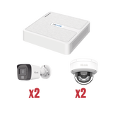Kit IP 1080p (2 Megapixel) / NVR de 4 Canales con 4 Puertos PoE / 2 Cámaras IP Bala para Exterior con microfono y Dual light / 2 Cámaras IP Domo para Exterior